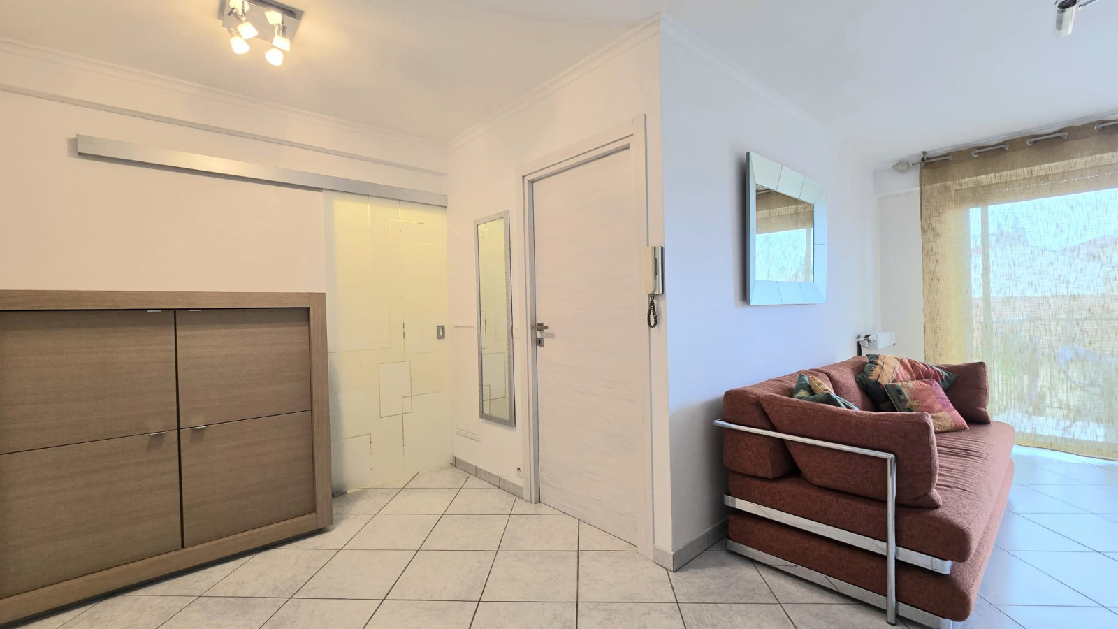 Dans une belle résidence, appartement de 3 pièces, en étage élevé. Il se compose de deux chambres, d'une cuisine américaine équipée ouverte sur le salon, d'une salle de bains et de toilettes indépendantes. Balcons.Garage dans l'immeuble.
